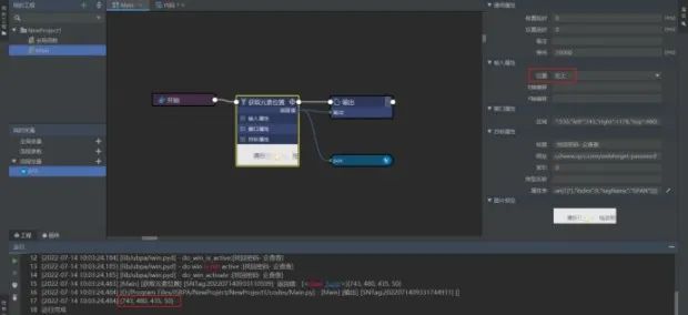 2、利用【獲取元素位置】組件,獲取滑塊左上角的坐標位置: