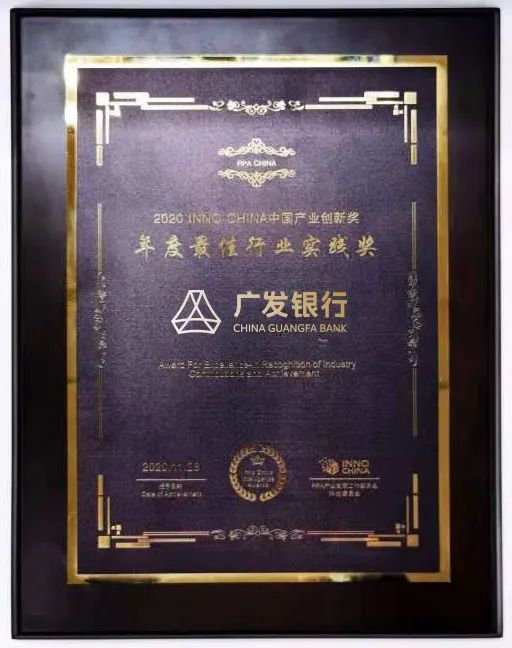 大會同時舉行了2020 INNO CHINA中國產業創新獎頒獎儀式,廣發銀行憑借在RPA領域豐富的業務應用場景和優異的自動化應用成效榮獲“年度最佳行業實踐獎”。