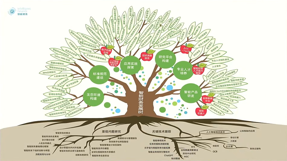 唐(tang):我(wo)記得2019年藝賽旗(qi)剛加入(ru)時,您借助一(yi)棵智(zhi)能財(cai)務(wu)發(fa)展樹(shu)向我(wo)們(men)描繪了智(zhi)能財(cai)務(wu)未(wei)來的研(yan)究藍圖。那時,樹(shu)上(shang)(shang)只有幾棵主干,沒有果實,但今年樹(shu)上(shang)(shang)已碩果累累。這(zhe)里想請您為我(wo)們(men)分享(xiang)一(yi)下智(zhi)能財(cai)務(wu)研(yan)究的發(fa)展趨勢。