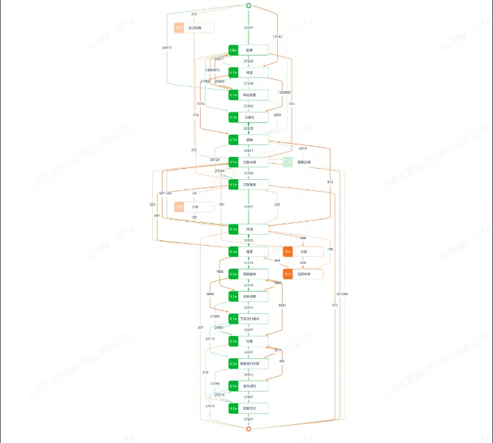 流程(cheng)挖(wa)掘(jue)可(ke)以直觀展現(xian)(xian)每筆理賠業務(wu)的(de)流轉路(lu)徑和所需(xu)時間(jian),可(ke)視化界面方便業務(wu)管(guan)理人員快速識別不規范流程(cheng)、高耗時節點,并(bing)可(ke)對問(wen)(wen)題(ti)節點快速定位出現(xian)(xian)問(wen)(wen)題(ti)的(de)部門和筆數,從而快速定位問(wen)(wen)題(ti)。