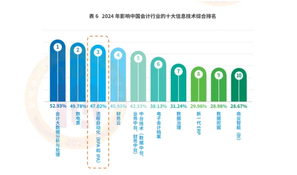 近期,上海國家會計(ji)學院(yuan)發布了2024年影響中國會計(ji)行(xing)業的十大信息技術評選結果。從綜合排(pai)名(ming)來看,RPA作(zuo)為賦能財務數字化轉型的重要技術之(zhi)一,繼續蟬(chan)聯榜(bang)單(dan),熱度不斷升溫,牢牢占(zhan)據榜(bang)單(dan)前三的位置(zhi)!