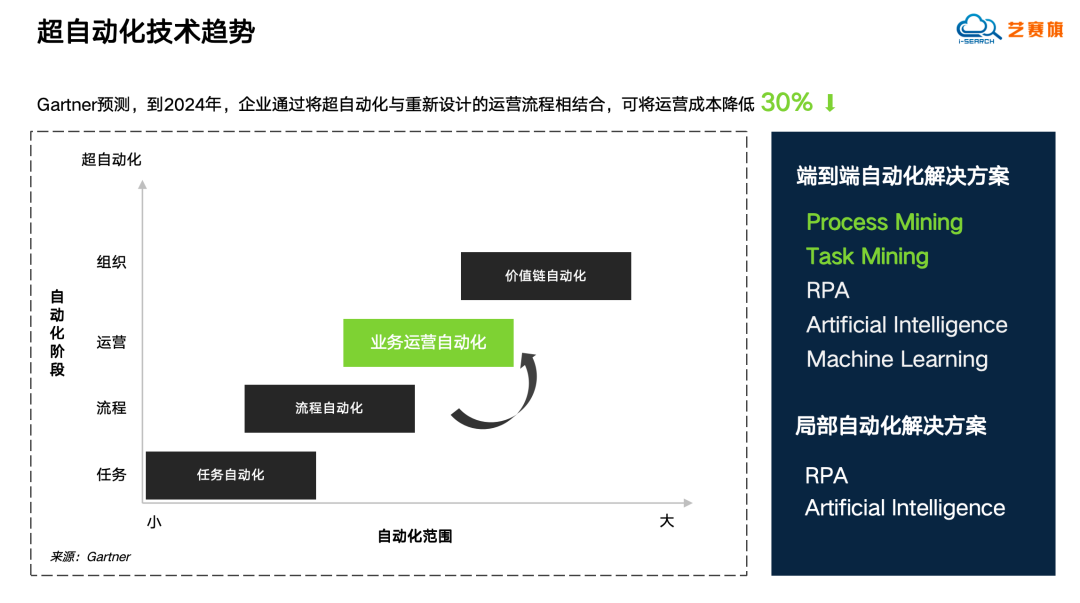 Gartner預測,到2024年,組織將超自動化技術與經過重新設計的運營流程相結合,可以將其運營成本降低30%。